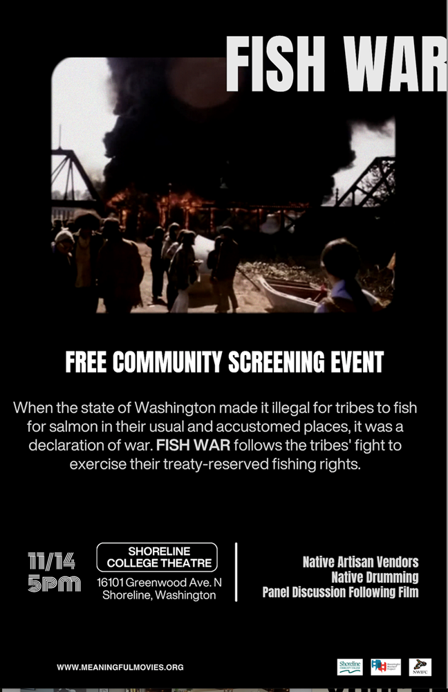 Enjoy this 11"X17" poster to commemorate the film "Fish War", the fight of PNW tribes to exercise their treaty-reserved fishing rights. It's an important reminder of the constant need to fight injustice in this world.